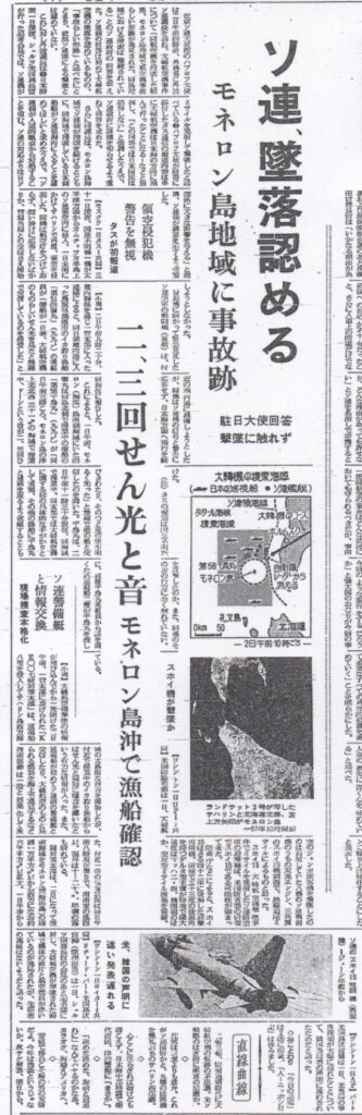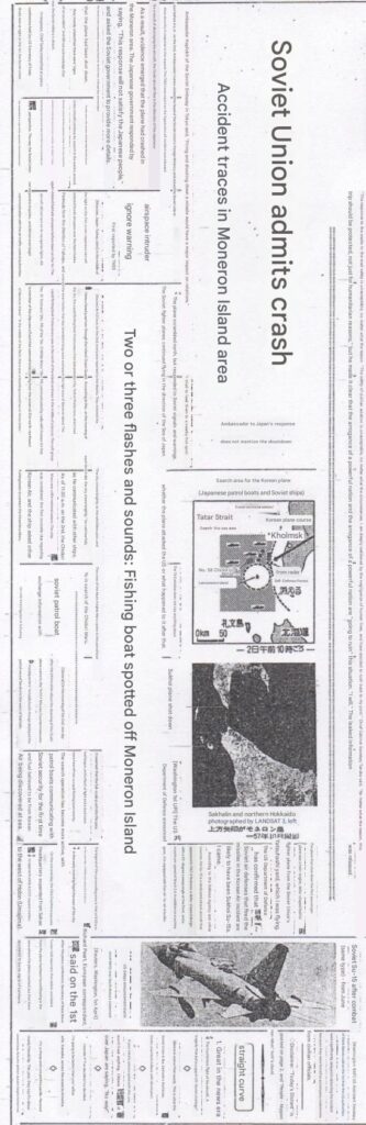 Machine translation of the above article: Headline: Testimony of Chidori Maru Crew: Strange Sight Near KAL 007 Crash Site