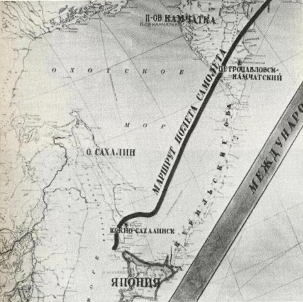 “Soon after this the intruder plane left the limits of Soviet airspace and continued its flight towards the Sea of Japan. For about 10 minutes it was within the observation zone of radio location means, after which it could be observed no more.